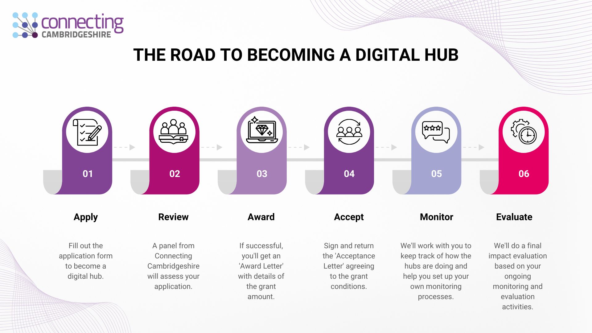 Download the Guidance, Application Form and Conditions of the grants: https://www.connectingcambridgeshire.co.uk/wp-content/uploads/Cambridgeshire-Digital-Hubs-Application-Guidance-Application-Form-and-Conditions-of-Grant.docx